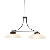 Light Bulb:(2)100w A19 Med F Incand, Finish:Olde Bronze Named after renowned Dutch architect, Hendrik Berlage, the Hendrik island pendant is a gorgeous contemporary fixture that honors the man who was regarded by many as the 'Father of Modern architecture.' Much like Berlage himself, the Hendrik Collection is regarded as an intermediary between modern and traditional styles.Classic lines are enhanced with a soft touch of current style cues to work in a number of aesthetic environments.The warm hue of the finish is partnered with light umber etched glass for a fantastic balance of natural color.Includes two (2) 6' and two (2) 12' stems. 56-1/2-Inch maximum overall fixture height Two 12-Inch and two 6-Inch included stem segments allow for height adjustment Globe style bulb is recommended for decorative look Listed to UL/CSA/ETL standards for dry location use Coordinates with the entire Hendrik lighting collection